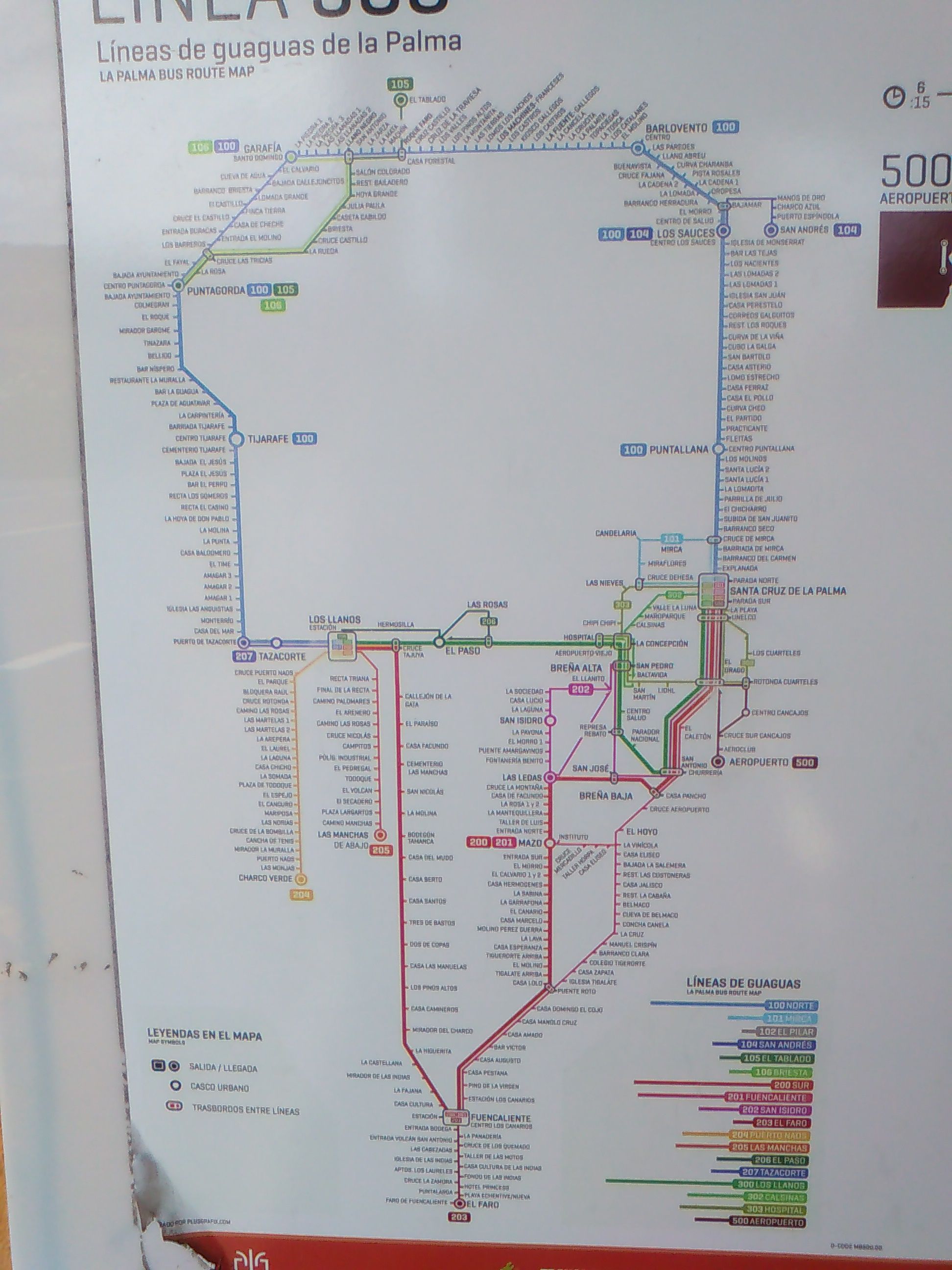Pierwsze co przychodzi na myśl to transport publiczny. No jest, istnieje, i… nikt go nie poleca. Autobusy (po palmersku „guaguas”) – w przeciwieństwie do maltańskich – jeżdżą rzadko (w soboty, niedziele i święta jeszcze rzadziej) i nie dojedzie się nimi do każdej atrakcji turystycznej. Za to pojazdy są nowe, a bilety tanie, bo dotowane przez państwo. Z czego to wynika? Ano z tego, że wyspa wciąż nie do końca otworzyła się na turystów (co ma swój urok), a transport publiczny ma służyć przede wszystkim mieszkańcom, a nie turystom. Jako że mieszkańcy w większości mają samochody, z guaguas korzystają głównie emeryci (=> informacja od Władka z Artefuego). Gwoli ścisłości dodamy, że w miarę często (czyli co pół godziny) jeżdżą autobusy z lotniska do Santa Cruz i z Santa Cruz do Los Llanos de Aridane – drugiego największego miasta na wyspie, ale i to tylko w dni robocze.
